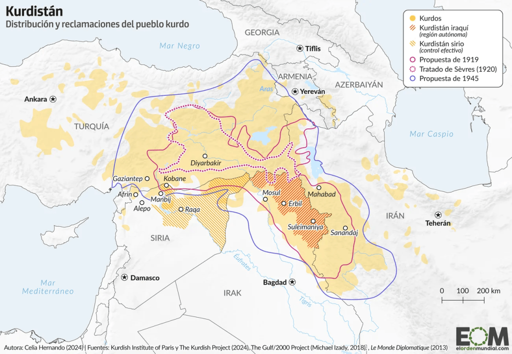 En Siria, por su parte, la caída del régimen de Asad a finales de año también ha vuelto a poner el foco sobre la cuestión kurda. Una comunidad de entre 25 y 35 millones de personas que se extiende por gran parte del Medio Oriente —de Turquía a Irán, pasando por Siria o Irak— pero que constituyen el mayor pueblo del mundo sin Estado propio.