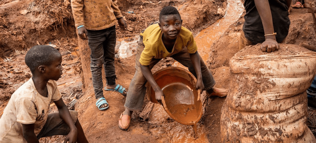 Unos niños trabajando en una mina de Kivu del Sur, en la República Democrática del Congo