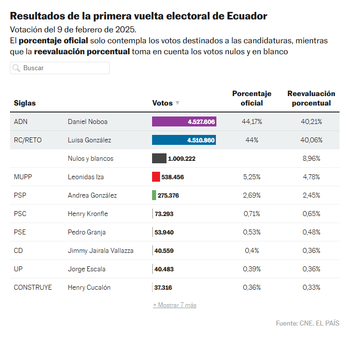 Dentro de la Confederación de Nacionalidades Indígenas del Ecuador (Conaie) hay muchas corrientes contrarias en contra de González, y más favorables a Noboa. El presidente sacó una buena votación en la sierra hace dos meses.