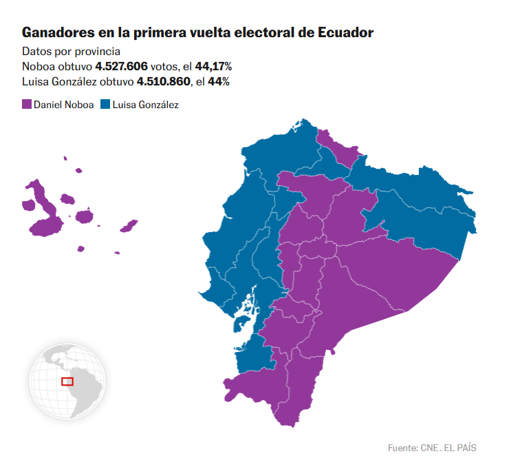 Noboa y González deberán gobernar un país con una de las tasas de homicidios más alta de Latinoamérica y con una deuda que pone en riesgo hasta la nómina de los funcionarios.