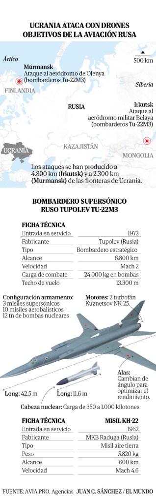 Este ataque coordinado, llevado a cabo el 1 de junio de 2025, destruyó más de 40 aeronaves estratégicas rusas en cinco bases aéreas, incluyendo bombarderos de largo alcance como los Tu-95 y Tu-22M3, así como aviones de alerta temprana A-50.