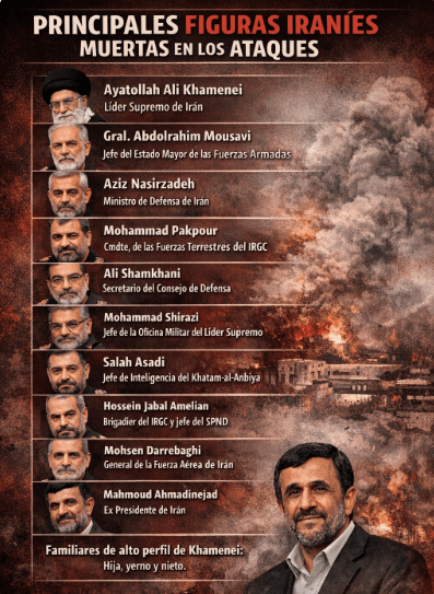 - Golpe de decapitación y parálisis: EE. UU. e Israel lanzan una campaña masiva sobre objetivos iraníes; el hecho político-militar más disruptivo es la muerte del Líder Supremo, Ali Khamenei.
