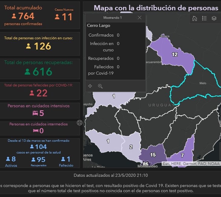 Actualización COVID-19 en Uruguay al 23 de mayo 2020