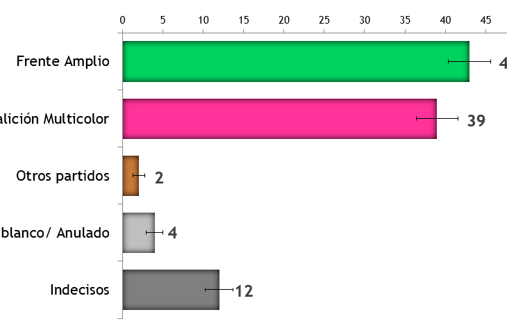 SIMPATÍA POLÍTICA POR PARTIDO EN ABRIL: FA 43%, PARTIDOS DE LA COALICIÓN 39%, según Equipos Consultores